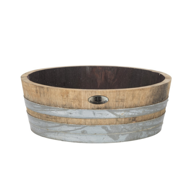 Kuip, handgemaakt uit een derde deel van een 190-liter wijnvat. Al onze kuipen zijn vervaardigd uit gebruikte eiken wijnvaten die jarenlang hebben bijgedragen aan de rijping van wijn. De vaten zijn gemaakt van het beste deel van de eiken stam. Elke kuip ondergaat een speciale behandeling, waardoor deze een unieke en robuuste uitstraling krijgt.